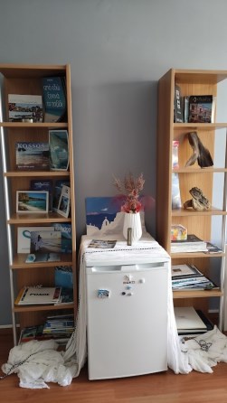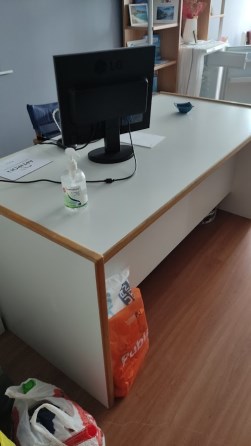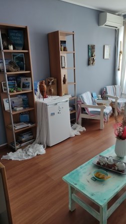 Δύο γραφεία, υπολογιστές, air condition, ψυγείο, φωριαμοί, καναπές, τραπεζάκια και καρέκλες.
