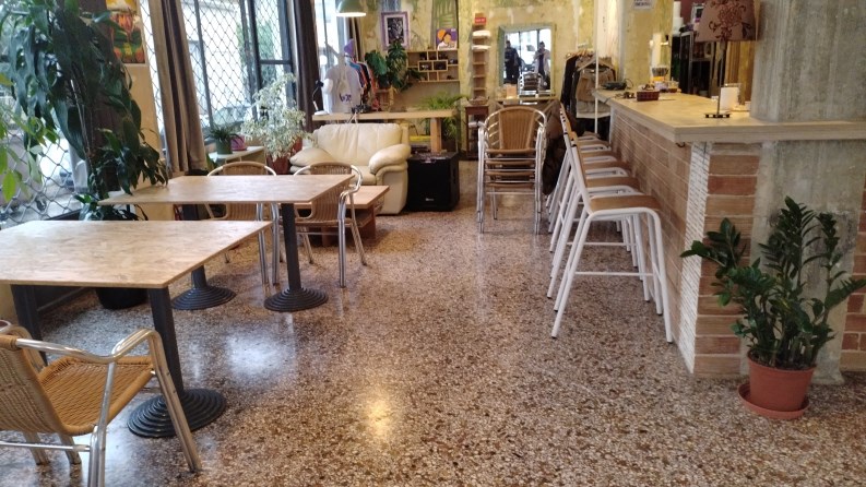 Πάγκος κουζίνας, 3 λάντζες (μια στην κουζίνα, 2 στο μπαρ) και τραπεζοκαθίσματα.