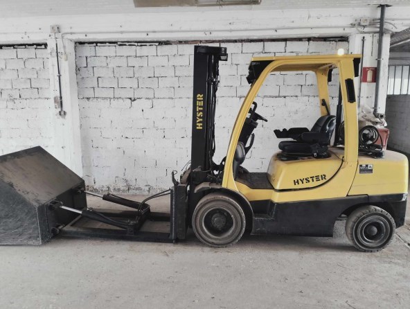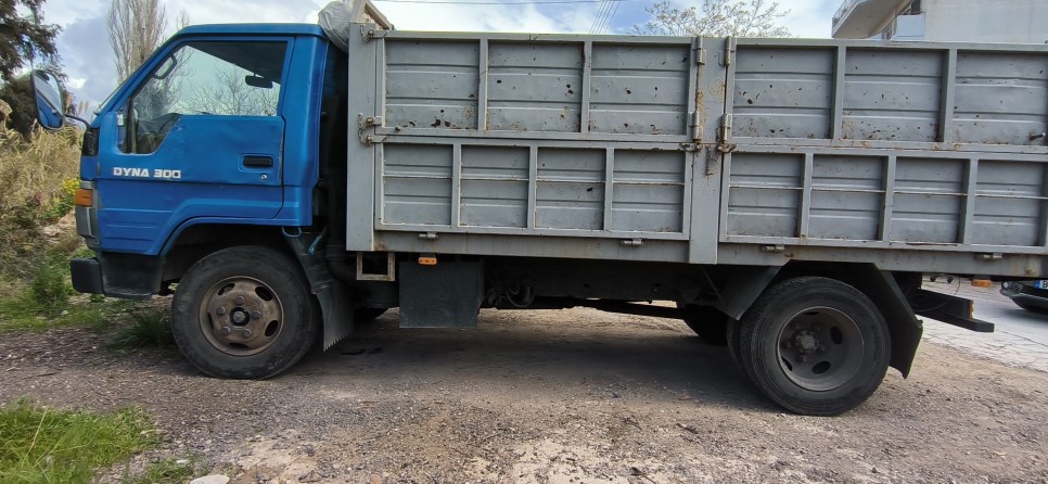 2 φορτηγά αυτοκίνητα, το ένα με ανατροπή, κλαρκ με ειδική παραγγελία υδραυλική χούφτα για φορτοεκφόρτωση ξυλείας και ημιεπαγγελματική πρέσα.