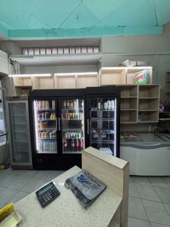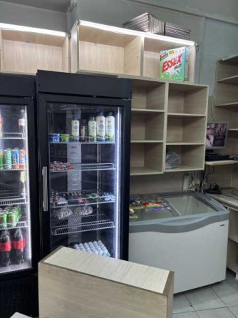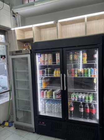 Ξύλινα ράφια-ντουλάπια, δύο ψυγεία ποτών-αναψυκτικών, δύο καταψύκτες, ένα aircondition 24άρι, ένα πάγκο με νεροχύτη.