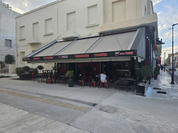 2 πλατό, 1 γριλιέρα, 1 γυριέρα, 3 πάγκους με 3 ψυγεία, 4 κάθετα ψυγεία αναψυκτικών, 5 καταψύκτες, τηλεόραση, 25 τραπέζια.