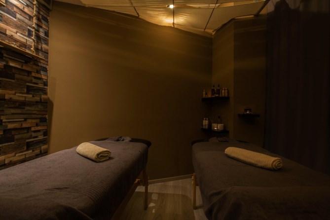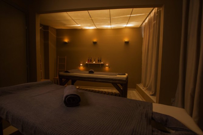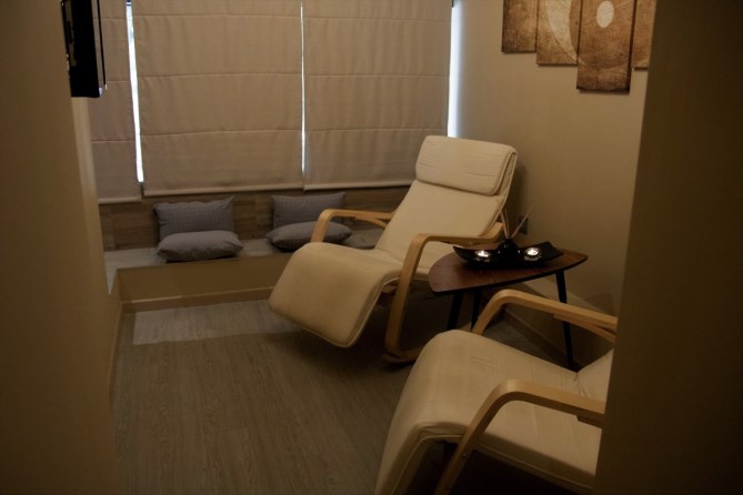 Ο χώρος είναι 80 τ.μ. καθαρά όπου περιλαμβάνει 2 καμπίνες μασάζ χωριστές που αποτελούνται από 2 κρεβάτια μασάζ η κάθε μία,1 WC, ένας χώρος Relax room που βρίσκεται η υπέρυθρη σάουνα χωρητικότητας 3-4 ατόμων,1 καμπίνα ντουζ και 2 καρέκλες με ένα τραπεζάκι όπου μπορούν να απολαύσουν το ρόφημά τους. Επίσης διαθέτει μια κουζίνα μικρή με μικρό ψυγείο,1 γραφείο και 1 μικρό χώρο υποδοχής. Σε όλους τους χώρους υπάρχει Laminate στο πάτωμα με κρυφούς φωτισμούς και γήινα χρώματα.