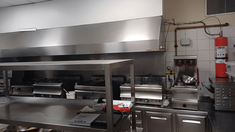 2 μεγάλες διπλές φριτέζες, 1 διπλή σχάρα, 4 φούρνοι (3 μικροί πίτσας), 4 ψυγεία-πάγκοι, 3 όρθια ψυγεία, 4 καταψύκτες, 3πλή λάντζα, 1 πάγκος-ερμάριο, 6 ραφιέρες, 1 Ηot Con, 1 φρυγανιέρα, 2 συστήματα παραγγελιοληψίας, 3 tablets, (5) κάμερες, συναγερμός, φούσκα.