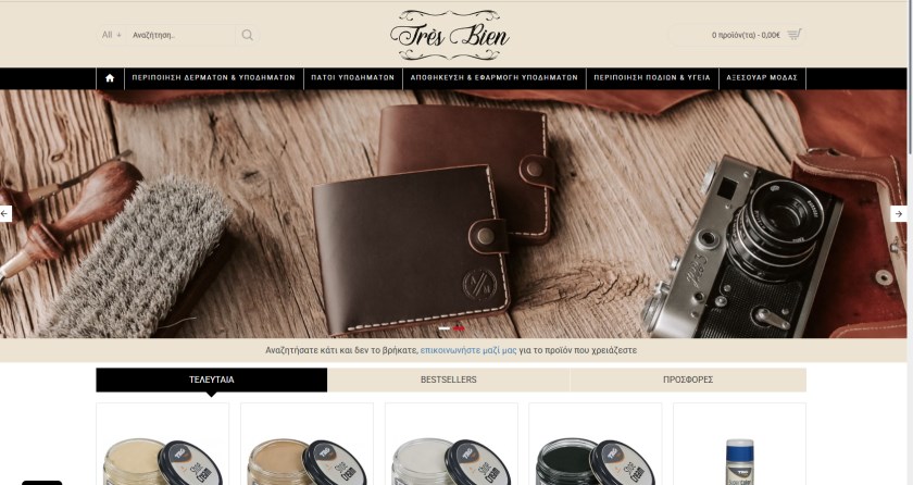 Πωλείται ηλεκτρονικό κατάστημα με είδη περιποίησης δερμάτινων προϊόντων και υποδημάτων. Μπορεί να συνδεθεί με φυσικό κατάστημα με δερμάτινα είδη ή με επιδιορθωτήριο παπουτσιών. Με 3,5 χρόνια παρουσίας και όλες τις απαραίτητες διασυνδέσεις. Η τιμή αφορά το εμπόρευμα και το κόστος κατασκευής και βελτίωσης του eshop.