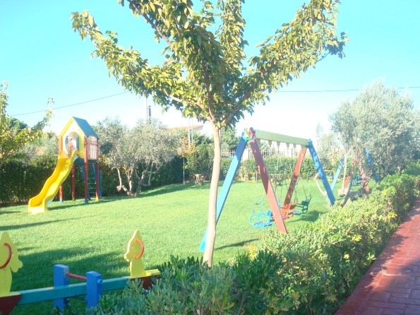 • Διαμορφωμένος προαύλιος χώρος με χλοοτάπητα, φωτισμό και Ξύλινη παιδική χαρα