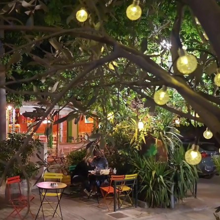 Αποτελείται από ισόγειο εσωτερικό χώρο ανάπτυξης τραπεζοκαθισμάτων, οργανωμένη κουζίνα, 2 WC και αποθηκευτικό χώρο. Εξωτερικά διαθέτει πρασιά αποκλειστικής χρήσης και αδειοδοτημένο από το δήμο χώρο τόσο για το πεζοδρόμιο όσο και για την απέναντι πλατεία. Συνολικά μπορεί να εξυπηρετήσει έως 120 άτομα.