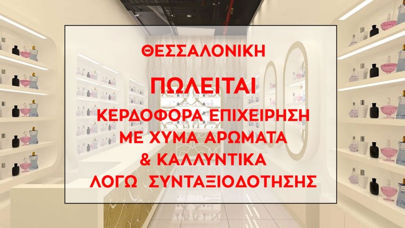 Πωλείται επιχείρηση Χονδρικής και Λιανικής, με χύμα αρώματα και φυσικά καλλυντικά. Η επιχείρηση έχει μεγάλο πελατολόγιο χονδρικής σε όλη την Ελλάδα, 1 φυσικό κατάστημα Λιανικής και 2 eshop. Δραστηριοποιείται αρκετά χρόνια στο χώρο, πολύ υψηλές πωλήσεις, συνεχή ανάπτυξη, χαμηλά λειτουργικά κόστη και μεγάλη κερδοφορία. Οι πωλήσεις προέρχονται κυρίως από την Ελλάδα, αλλά και το εξωτερικό (εξαγωγές). Απασχολεί δύο υπαλλήλους, έμπειρους και πλήρως καταρτισμένους, ώστε να λειτουργεί ακόμη και χωρίς την καθημερινή παρουσία του ιδιοκτήτη.