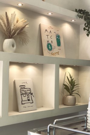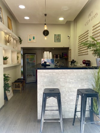 Μηχανή espresso 2 group (αγορασμένη, iδιόκτητη), δύο ψυγεία (ένα βιτρίνας και ένα Inox), 3 φραπιέρες.