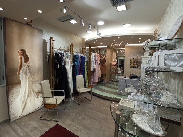 Κλιματισμός οροφής με κανάλια, 2 δοκιμαστήρια με πασαρέλα και καθρέπτες, 2 WC (προσωπικού & πελατών). Πλήρης ηλεκτρολογική εγκατάσταση με τριφασικό ρεύμα, πόρτες ασφαλείας, σύγχρονος συναγερμός με απομακρυσμένη λειτουργία, καταγραφικό με κάμερες HD και νυχτερινή λήψη. Οπτική ίνα, στοκ με περισσότερα από 150 νυφικά για κάθε budget. Βραδινά φορέματα και είδη γάμου (δισκοπότηρα, στέφανα κ.ά. ). Κούκλες βιτρίνας, κούκλες για ράψιμο, ραπτομηχανή, κοπτοράπτης, steamer σιδερώματος, πλυντήριο εγκατάσταση για πλύσιμο στο χέρι, πάγκοι για ράψιμο, ράγες για κρέμασμα νυφικών. Χώροι αποθήκευσης, κουζινάκι με ψυγειάκι για προετοιμασία γευμάτων. Πινακίδα LED video 1x2m στο παράθυρο, πλήρης φωτισμός LED.
