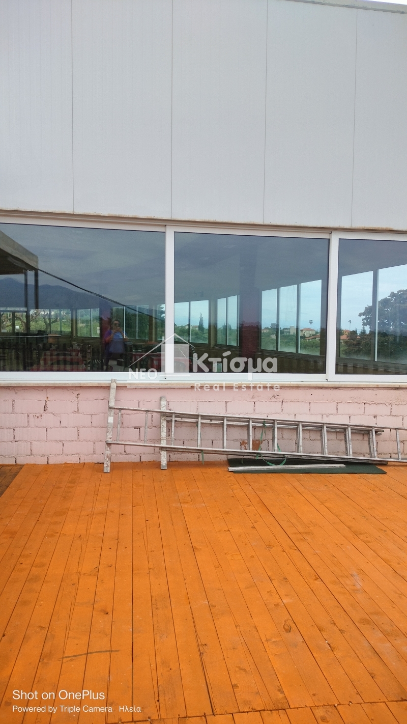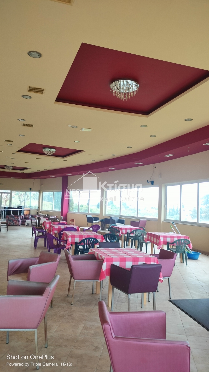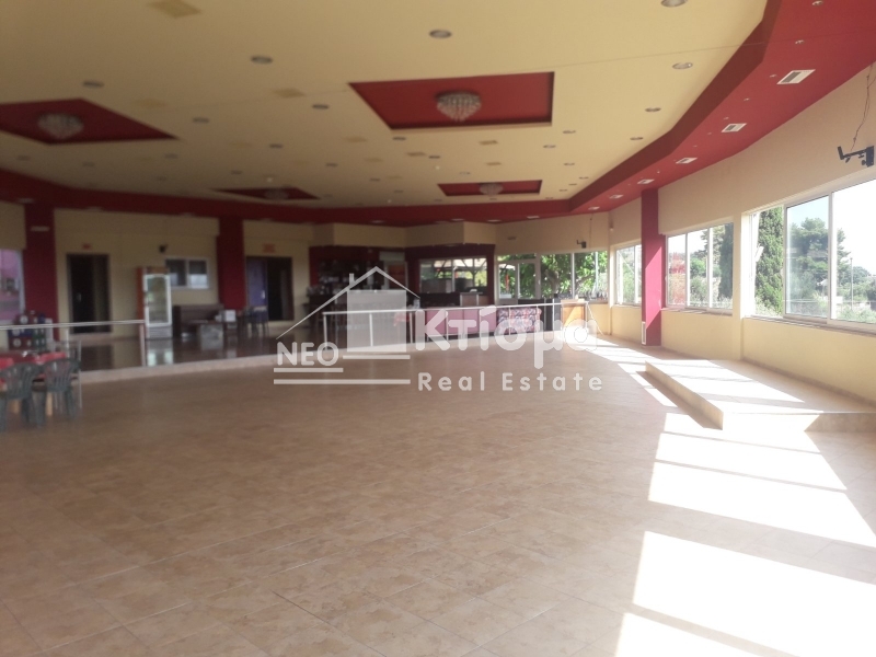 Σε ένα μεγάλο περιβάλλον οικοπέδου εμβαδού 3610 τμ βρίσκεται και το κατάστημα εστίασης που μπορεί να εξυπηρετήσει τα τουριστικά καταλύματα αλλά και να λειτουργήσει αυτόνομα .Η αίθουσα των 447τμ μπορεί να καλύψει ανάγκες εκδηλώσεων αρκετών ατόμων