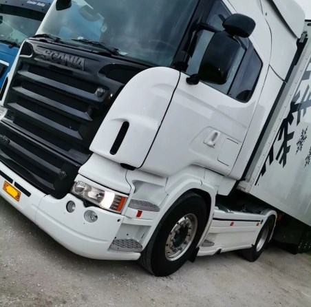 -Ένα επικαθήμενο φορτηγό ψυγείο.